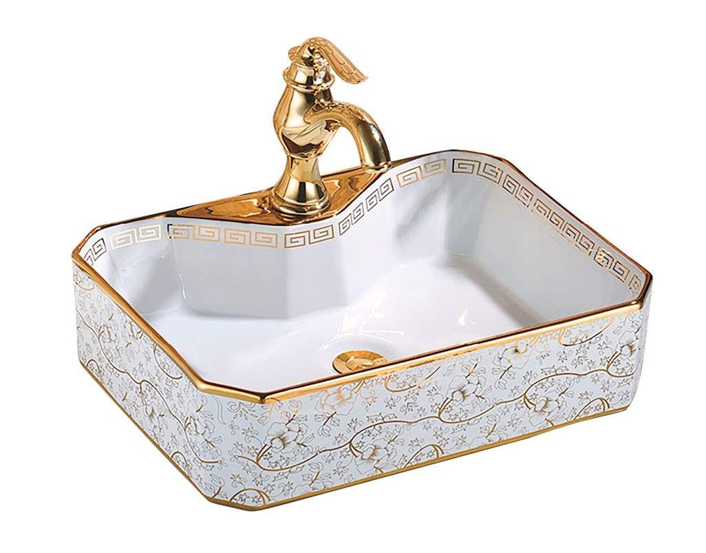 Hot and cold water faucets, all copper, European antique faucets, bathroom gold washbasin faucets, double handle single hole faucets